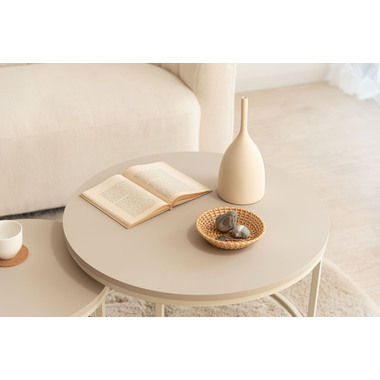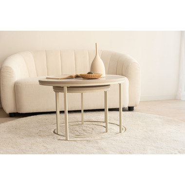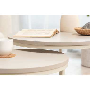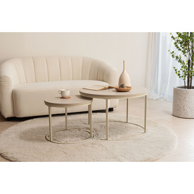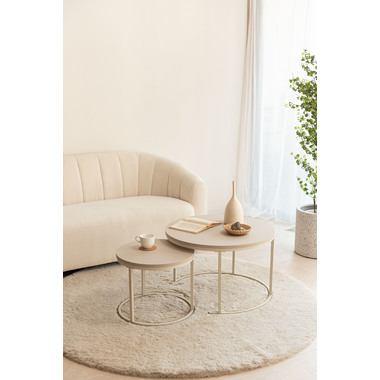 すっきりとした細身のフレームに、マットな質感の天板を組み合わせたネストテーブルです。やわらかで優しい印象の「ラウンド」と、洗練された雰囲気の「スクエア」をご用意。お部屋のスタイルや広さに合わせてレイアウトを変えられるネストテーブルは、2台を並べてゆったりとしたリビングテーブルとして使えるのはもちろん、重ねればコンパクトに収納でき、空間を広くすっきりと保つことができます。