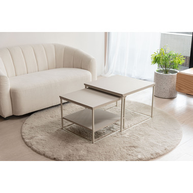 すっきりとした細身のフレームに、マットな質感の天板を組み合わせたネストテーブルです。やわらかで優しい印象の「ラウンド」と、洗練された雰囲気の「スクエア」をご用意。お部屋のスタイルや広さに合わせてレイアウトを変えられるネストテーブルは、2台を並べてゆったりとしたリビングテーブルとして使えるのはもちろん、重ねればコンパクトに収納でき、空間を広くすっきりと保つことができます。