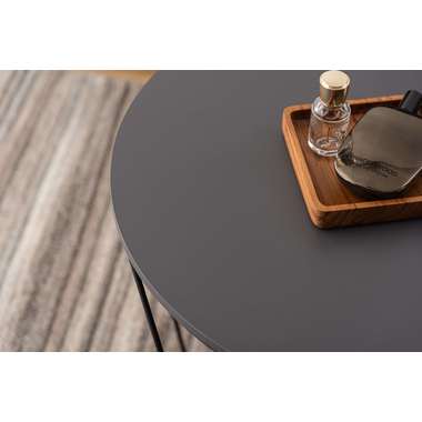 マットな質感の天板と、すっきりとしたフレームを組み合わせたラウンドテーブルシリーズ。主張を控えた佇まいなので、様々な空間になじみやすいデザインです。使用しない際には重ねて収納することでコンパクトに収まります。床置きやソファ横など、限られたスペースにも取り入れやすいサイズ感です。天板の取り外しができるので、トレーとして使用することもできます。