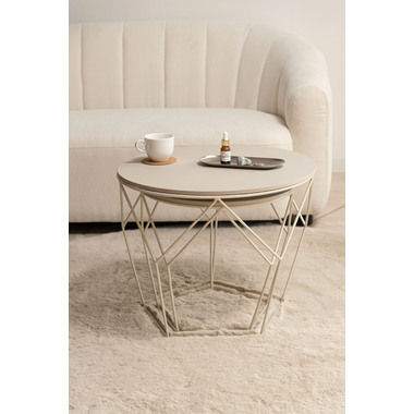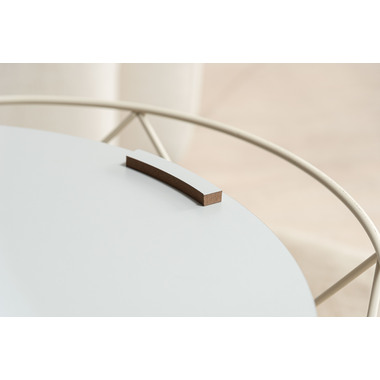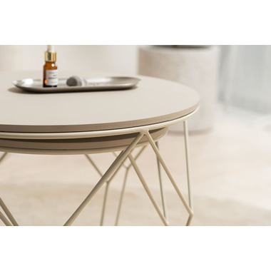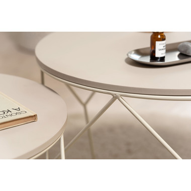 マットな質感の天板と、すっきりとしたフレームを組み合わせたラウンドテーブルシリーズ。主張を控えた佇まいなので、様々な空間になじみやすいデザインです。使用しない際には重ねて収納することでコンパクトに収まります。床置きやソファ横など、限られたスペースにも取り入れやすいサイズ感です。天板の取り外しができるので、トレーとして使用することもできます。