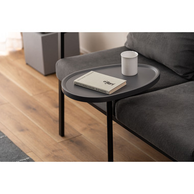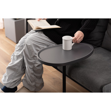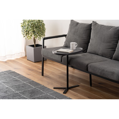 空間に自然となじみ、日常を心地よく整えるサイドテーブル。スリムなスチール脚と、しっとりと落ち着いた風合いの天板が、主張しすぎない上品な印象を演出します。 ソファの足元に差し込める、圧迫感を与えないスマートなフォルムが魅力的です。