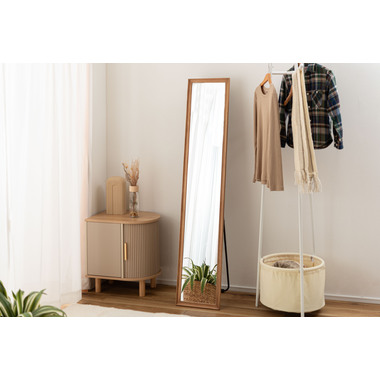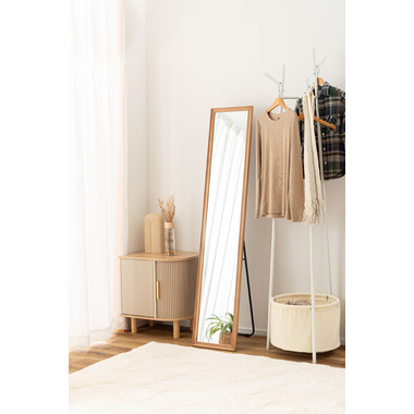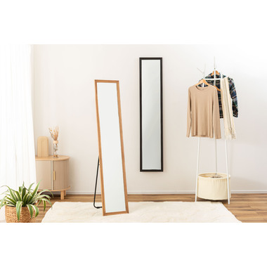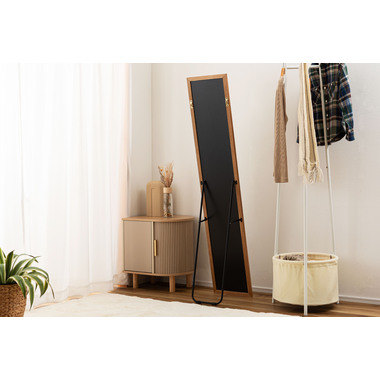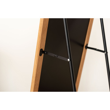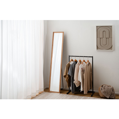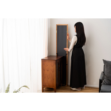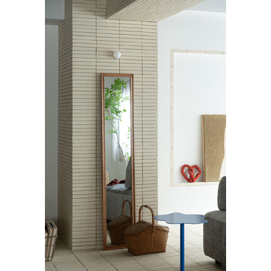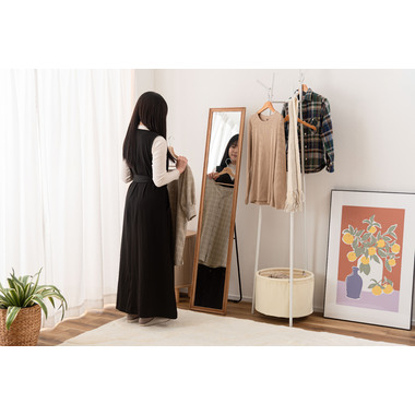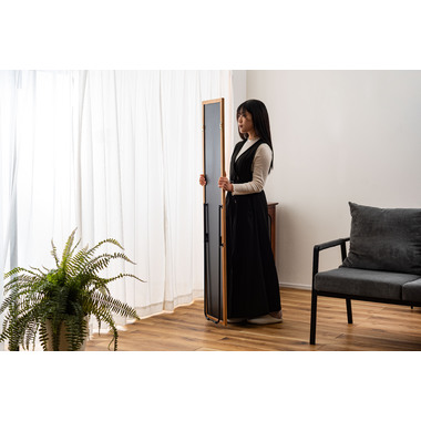細身の木枠が洗練された清潔感を醸し出す、2WAY仕様のスタンドミラー。 スタンドミラーとしてはもちろん、スタンド脚を外すことで壁掛けミラーとしても使用でき、ライフスタイルに合わせた使い方が可能です。シンプルな佇まいで、置く場所を選ばず、お部屋をすっきりと開放的に演出します。使わない際はコンパクトに折りたたみ、家具の隙間に収納できる省スペースさも魅力です。
