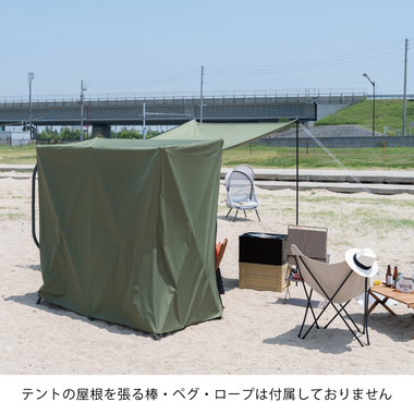 ●ガレージ、クローゼットや室内に広げて自分だけのプライベート空間として使えるルームテント。●使い方によって様々なシーンで活躍してくれるアイテム。●簡易ガレージとして自転車や脚立、工具類を収納するスペースに。●リビングに設置してデスクやランプを入れて、作業に集中したい時のおこもりスペースとして。●ルームテントでベッドを囲い小物でディスプレイをすれば、個性的で落ち着いたベッドルームに。●ルームテントの中に収納ラックを置けばクローゼットに早変わり。●お店の中に設置して、販売スペースとしてこだわりの商品やおすすめ商品をディスプレイするのにも。●折りたためばコンパクトになるので持ち運びにも便利。●前面カバーの先端にハトメ・ベルトが付いているので、ロープを通してタープを張る事も出来ます。