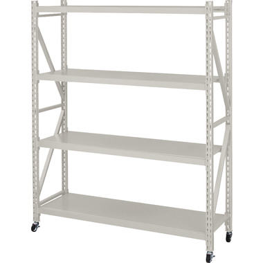 無骨さを取り入れたラック。ボルトレスラックはボルトが不要なので手軽に組立、棚移動が行えます。キャスターもついていますので移動も容易にできます。