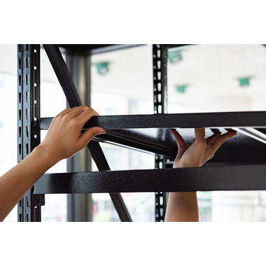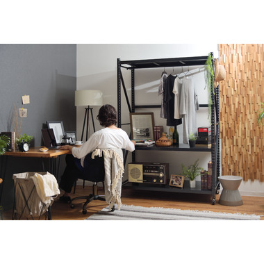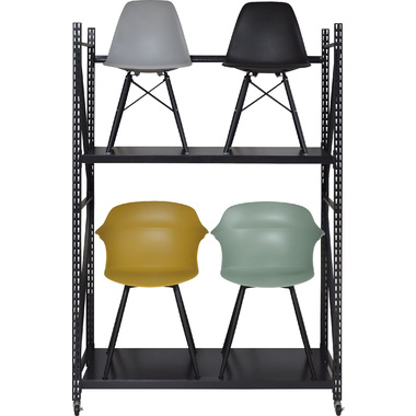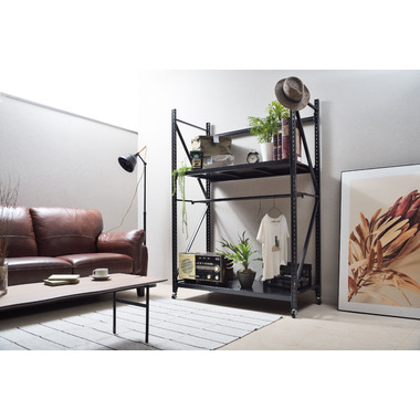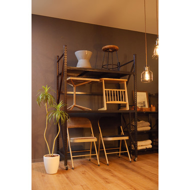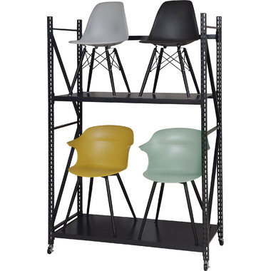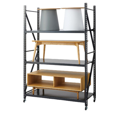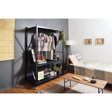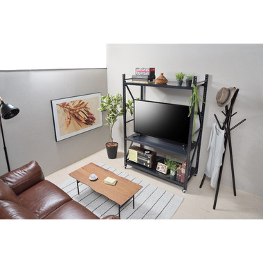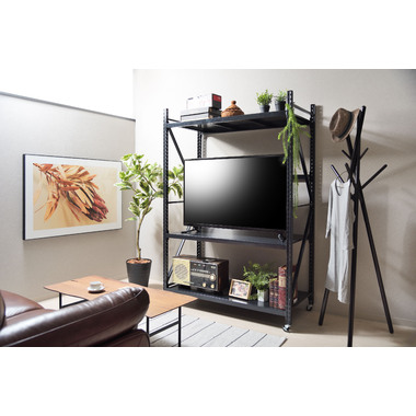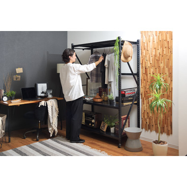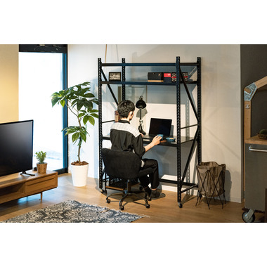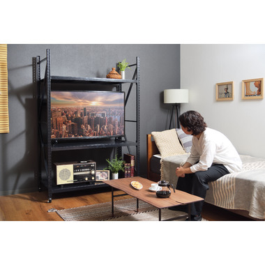 ●ボルトレスラックの奥行60cmタイプから新色のアイボリーが登場。●無骨さを取り入れたシンプルなデザインは使用シーンを選ばず、店舗のディスプレイ用什器はもちろん、収納付きTVラックとしてなど、あらゆる場面でお使いいただけます。●従来のボルトレスラック(DIS-683/684)が奥行40.5cmだったのに対し、DIS-685タイプは奥行60cmまで拡大。イスなどの幅の広い物でも余裕をもって配置できるようになったので、家具や雑貨を扱うお店の陳列棚としても活躍。