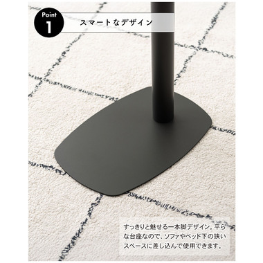 ●平らな台座なので、ソファやベッド下の狭いスペースに差し込んで使用可能。