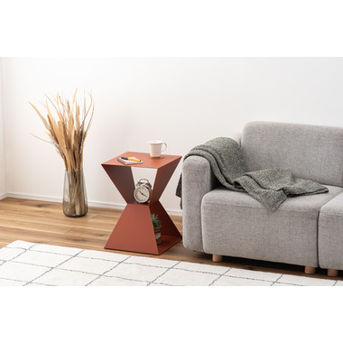●マットな質感と直線的な形状が目を引くサイドテーブル。