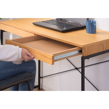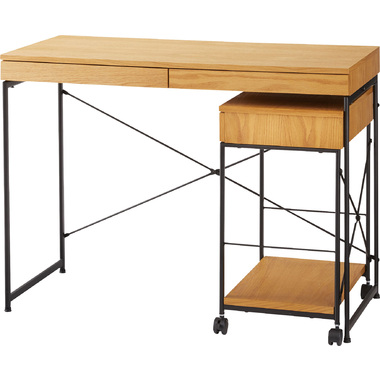 ●木目が美しい天然木(オーク)と、ブラックのスチール脚を組み合わせた異素材MIXデスク。