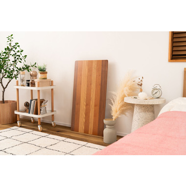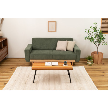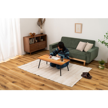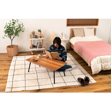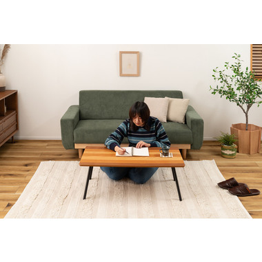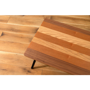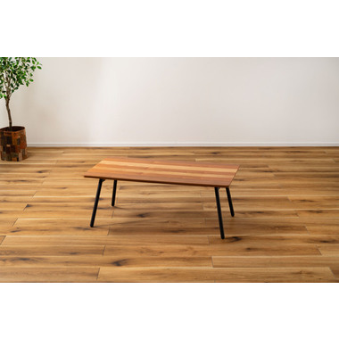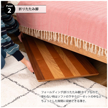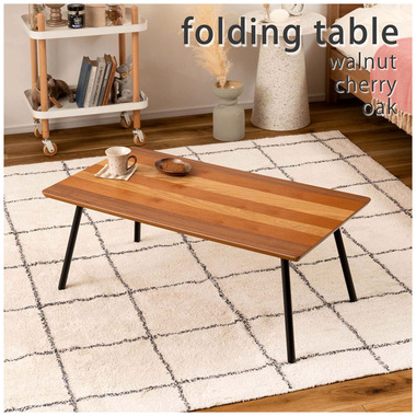 ●天板に天然木(突板)のウォルナット、オーク、チェリーを使用した、グラデーションが美しいフォールディングテーブル。●幅90×奥行48cmサイズなので、2人掛けソファに調度良いサイズ感。●フォールディング(折りたたみ脚)タイプなので、使わない時はソファの下やクローゼットの中などに収納できる薄さ。●脚を折りたたむ時は、金具についているストッパーフックを上から押し込み、脚を内側へ折りたたむだけの簡単仕様。●スチール脚はツヤを抑えた落ち着いた仕上がり。●脚先には保護キャップ付き。
