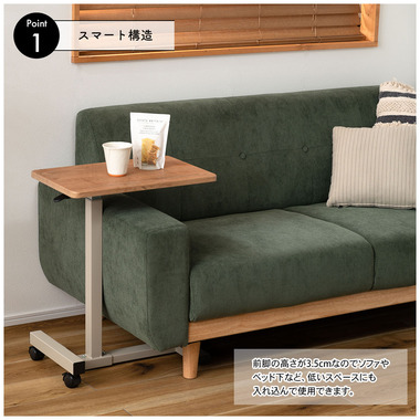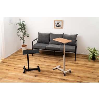 ●天板の木目柄が特徴的な、シンプルデザインの昇降サイドテーブル。
