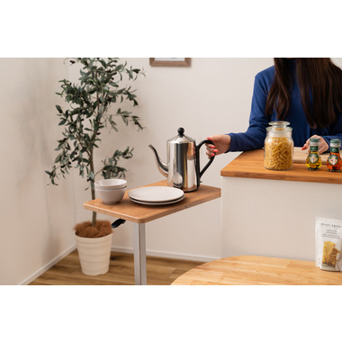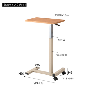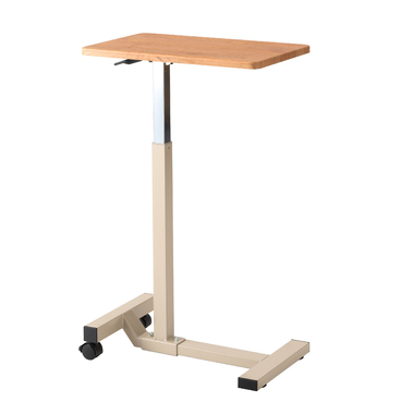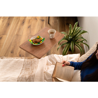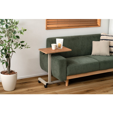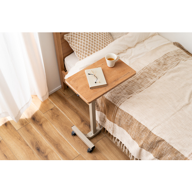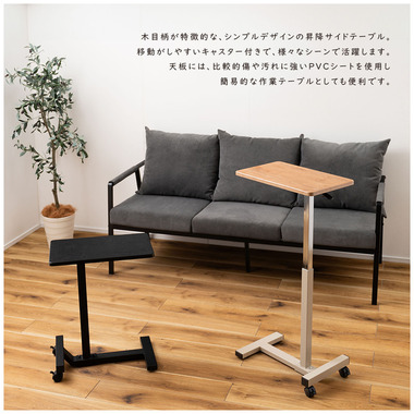 ●天板の木目柄が特徴的な、シンプルデザインの昇降サイドテーブル。
