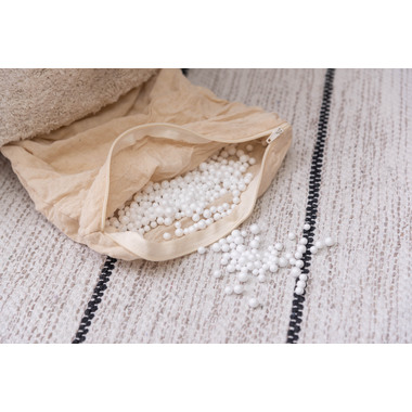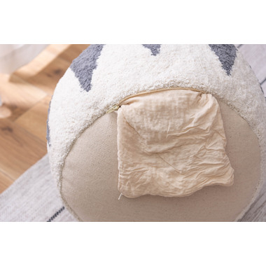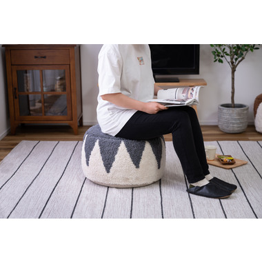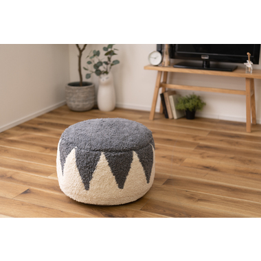 ●優しい手ざわりのラウンドスツール。●かわいらしいフォルムと優しい色合いがお部屋のアクセントに。●大きいサイズのクッションとしてや、ソファの前に置いてオットマンとしても使えます。●中材に発泡ビーズを使用しているので軽量。持ち運びもラクラクです。