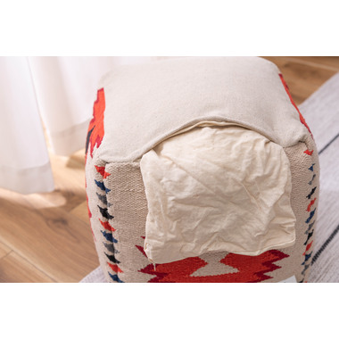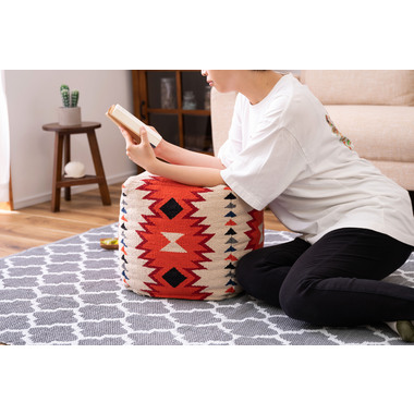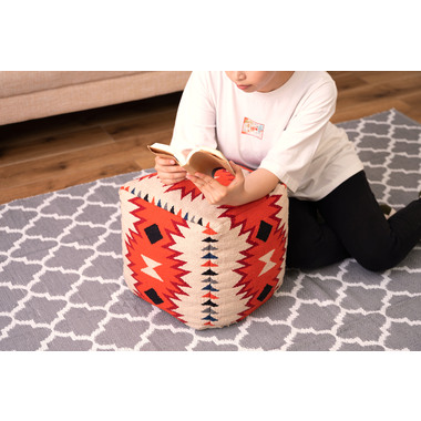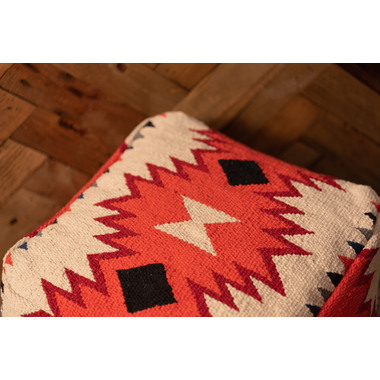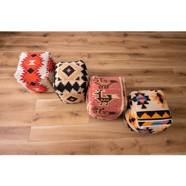 ●中近東の織物『キリム』でできたビーズクッション。●オルテガ調の柄はシンプルなお部屋でもオシャレなアクセントに。●スツール、肘掛け、オットマンなど様々な使用ができます。●発泡ビーズを使用した、適度な弾力のピーズクッション。