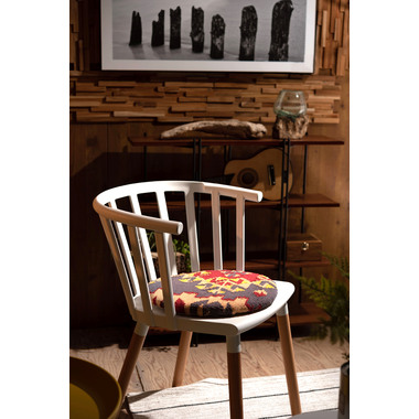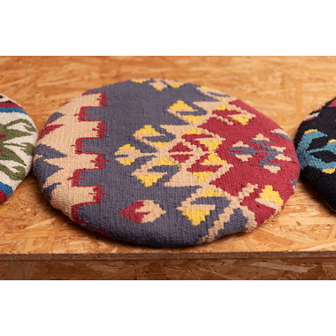 ●中近東の織物『キリム』でできたシートクッション。●温かみのあるオルテガ調模様のクッションはデザイン性のあるインテリアやシンプルなお部屋にも合わせられるワンポイントアイテムです。●座面部分にクッションがないチェアやベンチ、スツール等に合わせてクッション性とデザイン性の両方を楽しむ事ができるシートクッション。●持ち運びに便利なサイズなのでアウトドアやキャンプ等に持っていくのも良いですね。
