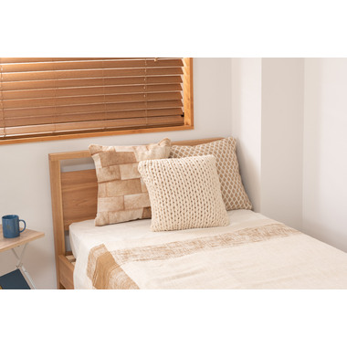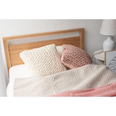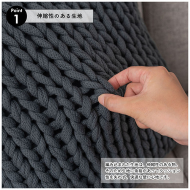 ●それはまるでニットのように。丁寧に編み込まれたカバーリングが印象的なクッション。