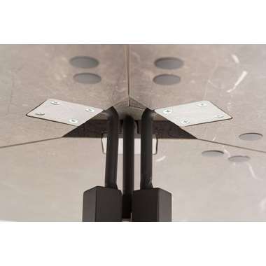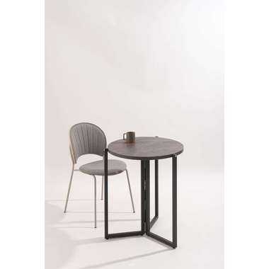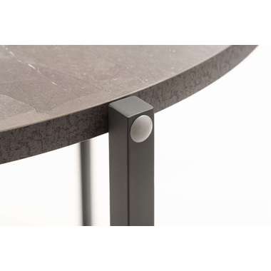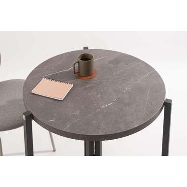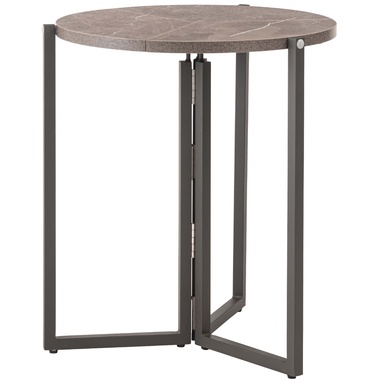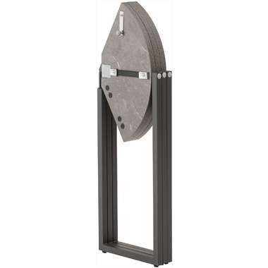 落ち着きのある石目調の色合いが魅力のフォールディングラウンドテーブル。天板を折りたためばスリムな形状になり、家具のすき間や壁際などにも立てかけて省スペースに収納できます。美しい石目模様の天板が空間にモダンで洗練された印象をもたらします。脚部には重厚感のあるスチール素材を採用し、直線的で安定感のあるデザインに仕上げました。