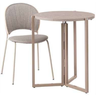 落ち着きのある石目調の色合いが魅力のフォールディングラウンドテーブル。天板を折りたためばスリムな形状になり、家具のすき間や壁際などにも立てかけて省スペースに収納できます。美しい石目模様の天板が空間にモダンで洗練された印象をもたらします。脚部には重厚感のあるスチール素材を採用し、直線的で安定感のあるデザインに仕上げました。