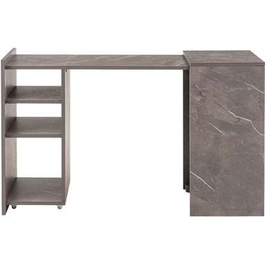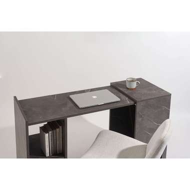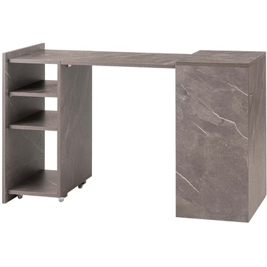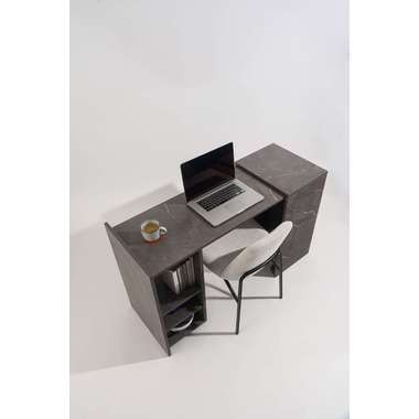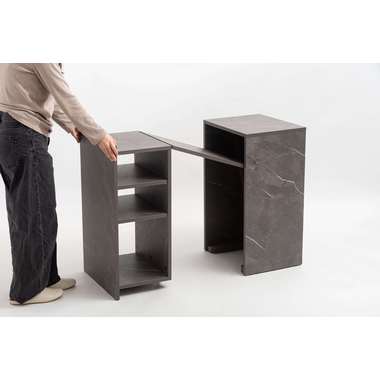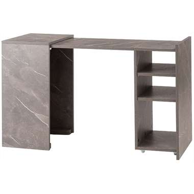 上品な石目調が空間に洗練された印象を与えるトランスフォームデスク。シーンに合わせて天板をスライドさせるだけで、作業に集中しやすい広々としたデスクスペースが生まれます。折りたたむと省スペースに収まり、限られたお部屋でも快適に使える設計です。棚板 (中段以外) はダボ式で高さ調整ができ、収納する物に合わせてレイアウト可能。さらに天板ロック付きで安定感も確保し、常使いから在宅ワークまで頼れる存在です。