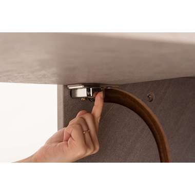 上品な石目調が空間に洗練された印象を与えるトランスフォームデスク。シーンに合わせて天板をスライドさせるだけで、作業に集中しやすい広々としたデスクスペースが生まれます。折りたたむと省スペースに収まり、限られたお部屋でも快適に使える設計です。棚板 (中段以外) はダボ式で高さ調整ができ、収納する物に合わせてレイアウト可能。さらに天板ロック付きで安定感も確保し、常使いから在宅ワークまで頼れる存在です。
