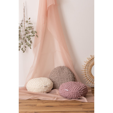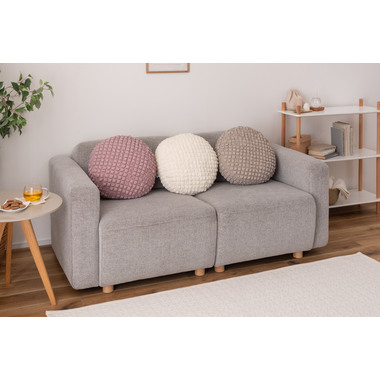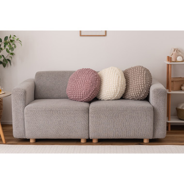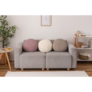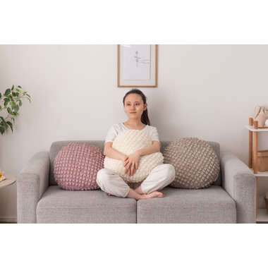●もちもち触感が気持ちいいラウンドクッションは置くだけでインテリアに可愛さがプラスされるアイテム。