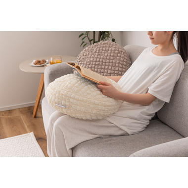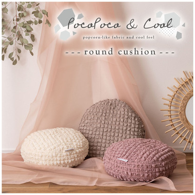 ●人気のポップコーン生地を使った接触冷感のラウンドクッション。