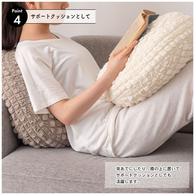 ●背あてにしたり、膝の上に置いてサポートクッションとしても活躍。