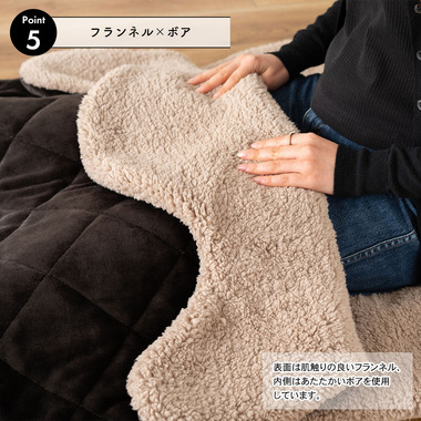 ●表面は肌触りの良いフランネル、内側は暖かいボアを使用。