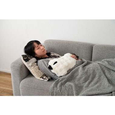 電源を繋いで蓄熱することであたたかさが持続してくれるので、 面倒なお湯の入れ替えは一切不要なエコ仕様です。 もこもこの凹凸が特徴的な生地を使用し、触り心地にもこだわりました。