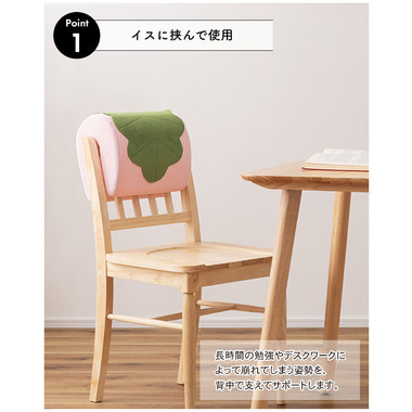 ●イスの背もたれに挟んで使うことで、長時間の勉強やデスクワークによって崩れてしまいがちな姿勢を背中で支えてサポート。