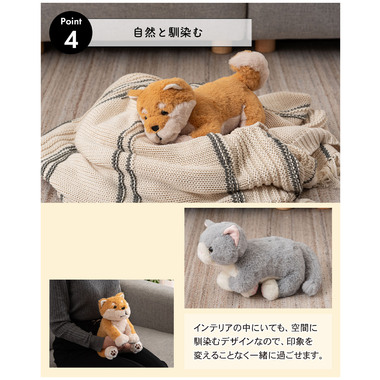 ●本物の仔犬や仔猫のような程よい重さがあるので、動物を飼えないご家庭にもピッタリ。