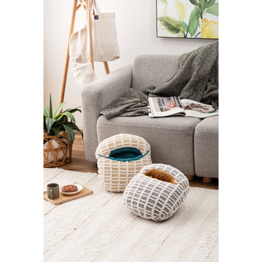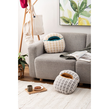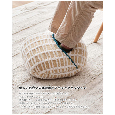 ●優しい色合いの北欧風ボアチェックフットインクッション。