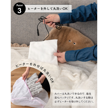 ●ヒーターは取り出しが可能で、カバーを丸洗いすることができます。