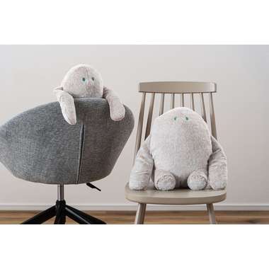 デスクワーク中もリラックスタイムも、やさしく身体を支えてくれるお座りクッション&ぶら下がりクッション。お座りクッションは、おなかに抱えて使うことで自然と背筋が伸び、猫背を防止。デスクワークや読書の際には腕を支えるアームレストとして使用できます。側面のポケットに手を入れてぬくもりを感じられます。ぶら下がりクッションは、ボディに2つのボールを内蔵。もたれるだけで背中に当たり、心地よくリフレッシュさせてくれます。軽く重みを持たせた手の先が、背もたれに掛けたときの安定感をサポートしてくれます。滑らかで柔らかい生地と穏やかな表情が空間にやさしくなじみ、様々なインテリアのアクセントになります。