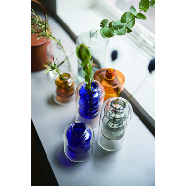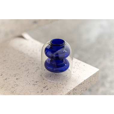 二重構造のユニークなフォルムが特徴的な一輪挿しタイプのガラスベース。
