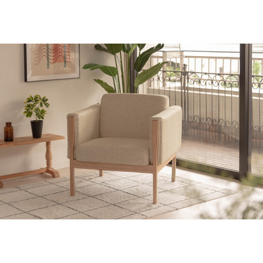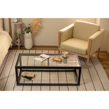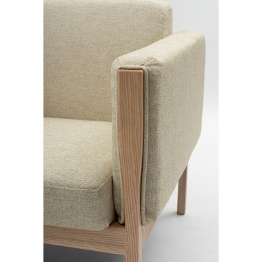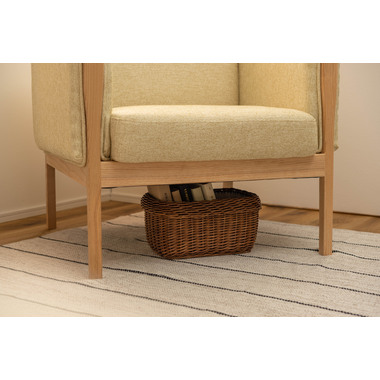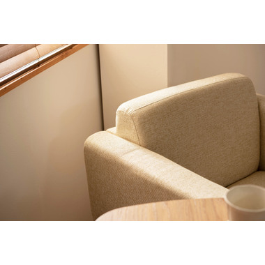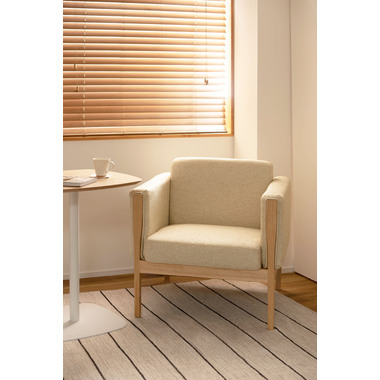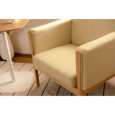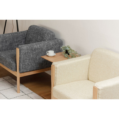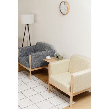 ●直線的なラインで無駄のないシンプルなデザインが印象的なソファ。●アームに施された天然木の飾りが美しく温かみを感じさせます。●全体的にカッチリと直線が活きたデザインなので、オフィスの来客用ソファとしても使えるデザイン。●床から座面下フレームまでの空間が23cmと広々。お掃除ロボットも楽に入れる空間なのでソファ下のお手入れも簡単です。●座面フレームにはウィービングベルトを採用しているので、沈み込みすぎず適度に弾力のある快適な座り心地。