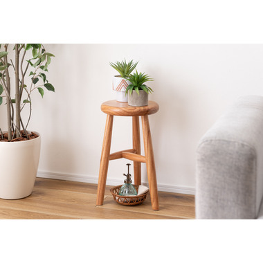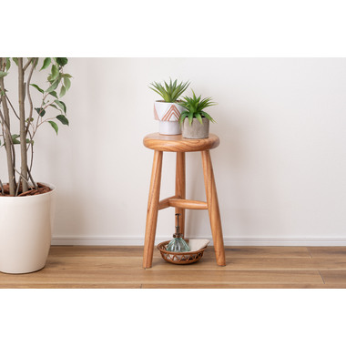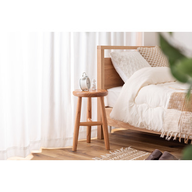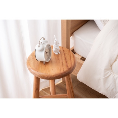 あたたかみのある天然木でつくられた、角が丸いスツール。シンプルながらコロンとしたフォルムがかわいらしい、お部屋になじむデザインです。スツールとしての使用以外にもサイドテーブルやディスプレイとして利用でき、様々な場面でサポートします。