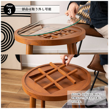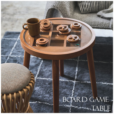 ●仕切り板と〇×の駒付きで、天板でボードゲームが楽しめる仕様。