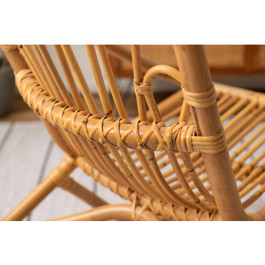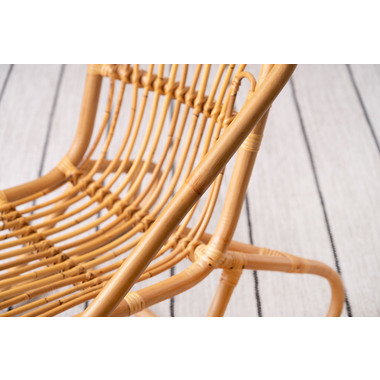 ●天然素材の優しい風合い。丸みを帯びたコンパクトなラタンチェア。●体全体を優しく支える流線形/天然ラタンの特徴はしなやかなライン。体のラインにフィットし、包み込まれるような座り心地。●置くものを引き立たせるデザイン/シートクッションと合わせてもGOOD。手軽に色や柄を取り入れられます。ナチュラルなデザインがより引き立ちます。●かわいらしいデザイン/空間になじむ、素朴でナチュラルなデザイン。オブジェのようなインテリアのアクセントになるチェア。●軽量設計/天然ラタンのもう一つの特徴は強度が高く非常に軽量なこと。女性でも簡単に持ち運べます。●細かなディティール/使われている素材は全て天然ラタン。個体差のあるラタンを手作業で丁寧に編み込み作られています。