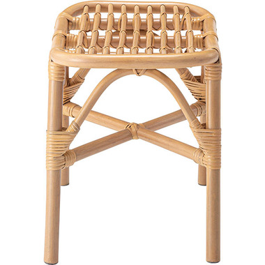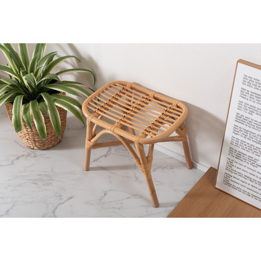 ●天然ラタンを使用した、湾曲した広めの座面でゆったり座れるラタンスツール。