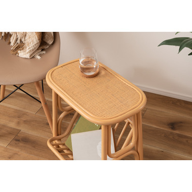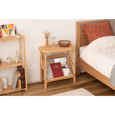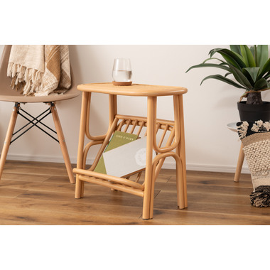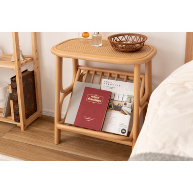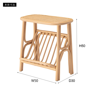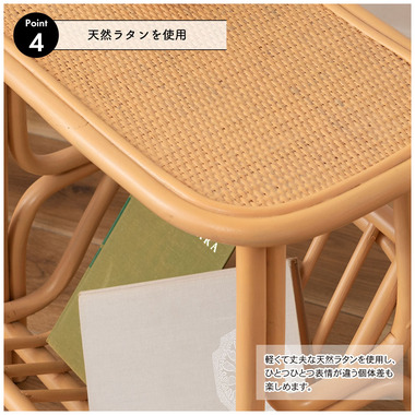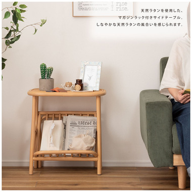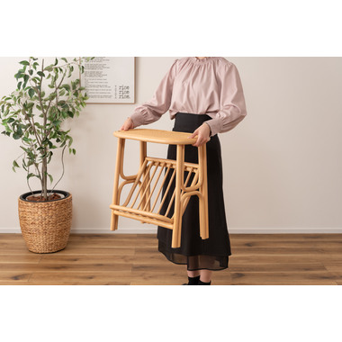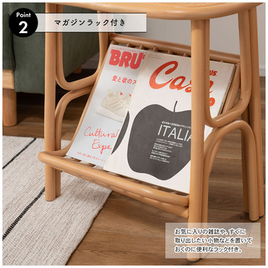 ●天然ラタンを使用したマガジンラック付きサイドテーブル。