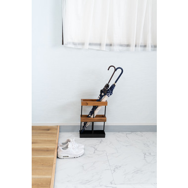 ●温かみのあるチーク材とスタイリッシュなアイアンを組み合わせたアンブレラスタンド。