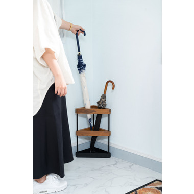 ●温かみのあるチーク材とスタイリッシュなアイアンを組み合わせたアンブレラスタンド。