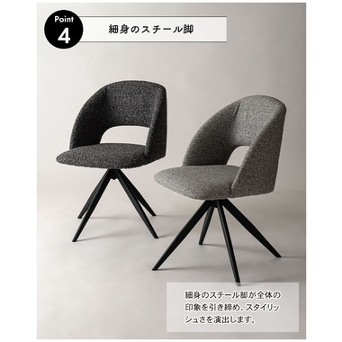 ●デザインと利便性を兼ね備えた回転チェア。