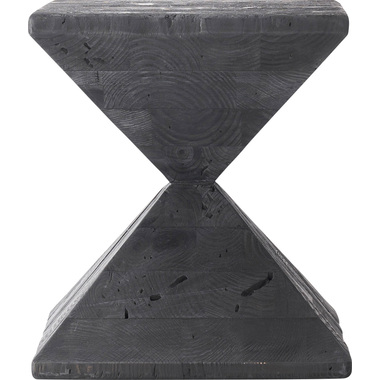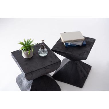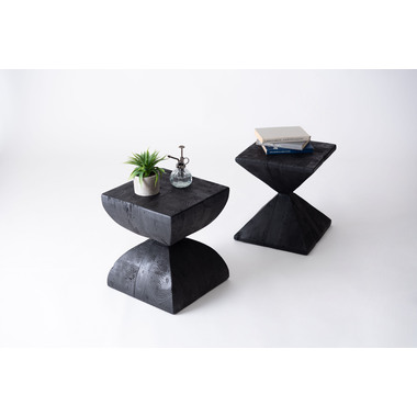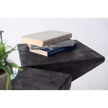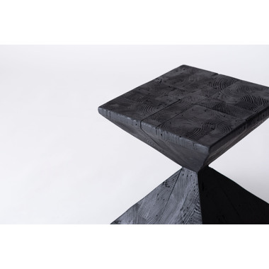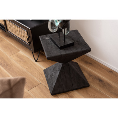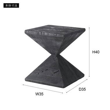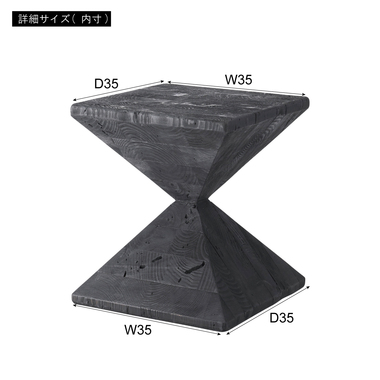 ●パイン古材×黒×線の美しさのバランス。●インテリアのひとつとして置くだけでも存在感を放つサイドテーブル。●表情の異なるパイン古材の質感と独特の形状が上質な空間を演出。●ディスプレイ棚やスツールとしても使うことができます。●ゆったりと使える上面。●裏面に滑り止めフェルト付き。