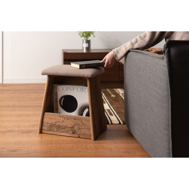 【検索キーワード】スツール サイドテーブル 簡易テーブル スリッパラック サブスツール 収納 雑誌置き ダイニング 玄関 ベッドサイド ソファサイド 椅子 コンパクト シンプル ナチュラル 古材 パイン材 天然木 ファブリック グレー ベージュ