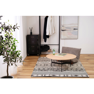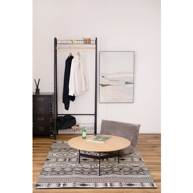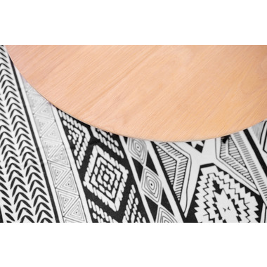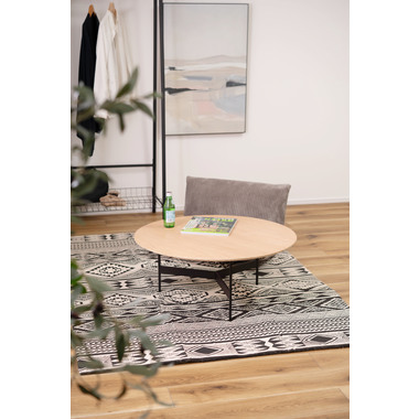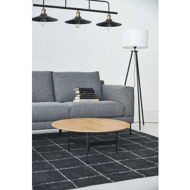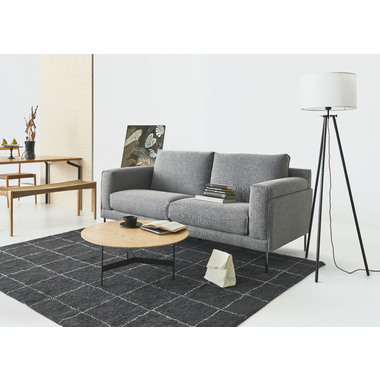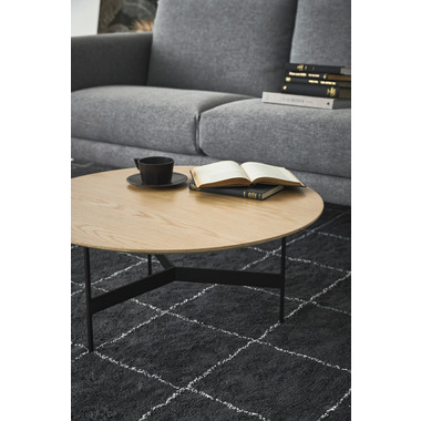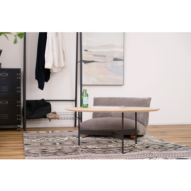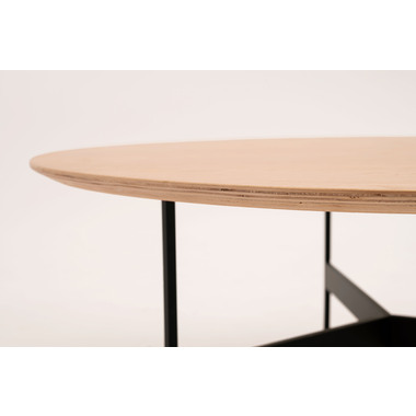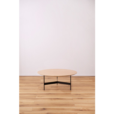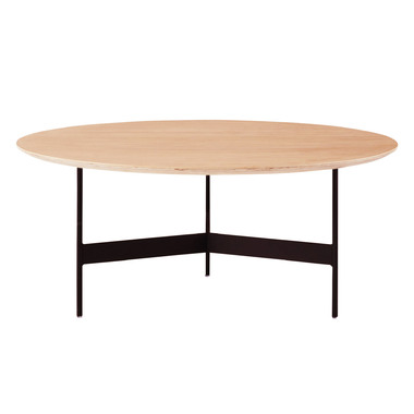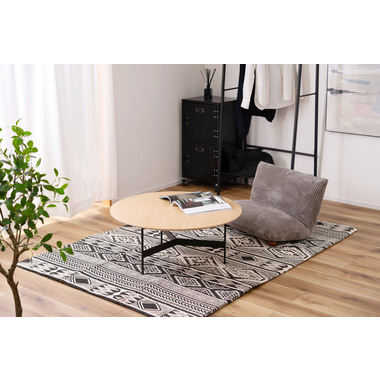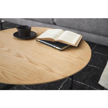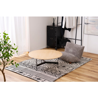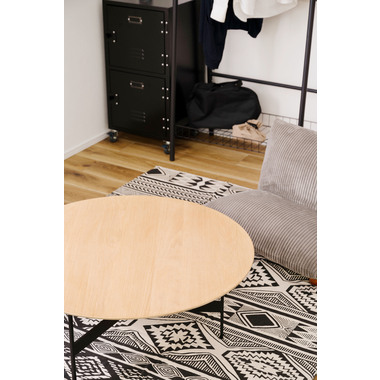 ●天板には重厚感のあるオーク突板を使用し、脚部は異素材のマットな質感のブラックアイアンレッグを組み合わせています。