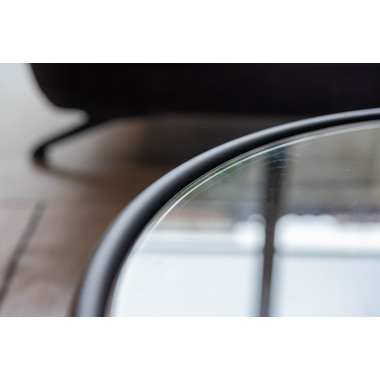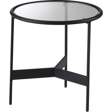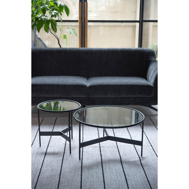●シンプルでスタイリッシュなガラステーブル。●マットなブラックアイアンの滑らかな曲線とハードなガラスを組み合わせた2サイズのローテーブル。●リビングテーブル/サイドテーブルとして使用したり、2台並べてネストテーブルとしても使用できます。●脚部は10mm角のシャープなラインが際立ち、透明なガラス天板との組み合わせは圧迫感の無い開放的な空間を演出します。●脚先には、デザイン性を落とさない、透明な軟質キャップを使用しており、床への傷をケアしながらもデザイン性高く仕上がっています。