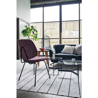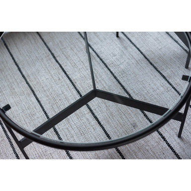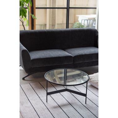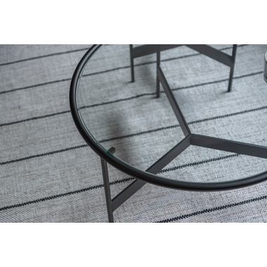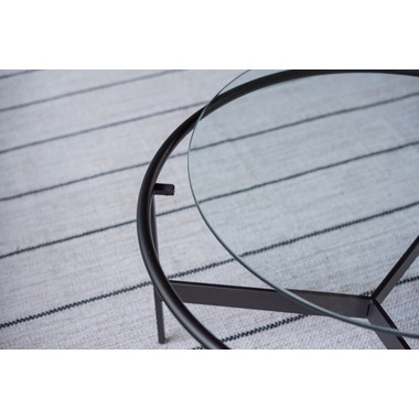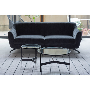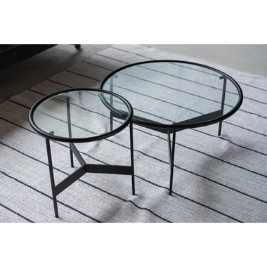 ●シンプルでスタイリッシュなガラステーブル。●マットなブラックアイアンの滑らかな曲線とハードなガラスを組み合わせた2サイズのローテーブル。●リビングテーブル/サイドテーブルとして使用したり、2台並べてネストテーブルとしても使用できます。●脚部は10mm角のシャープなラインが際立ち、透明なガラス天板との組み合わせは圧迫感の無い開放的な空間を演出します。●脚先には、デザイン性を落とさない、透明な軟質キャップを使用しており、床への傷をケアしながらもデザイン性高く仕上がっています。