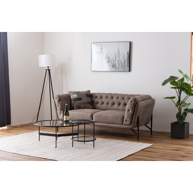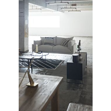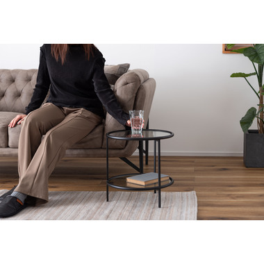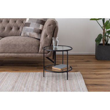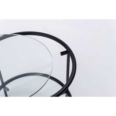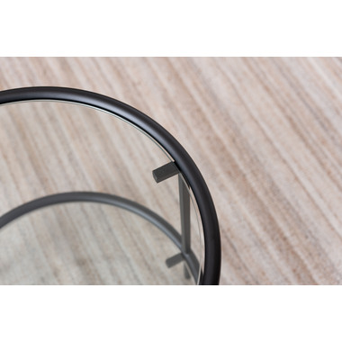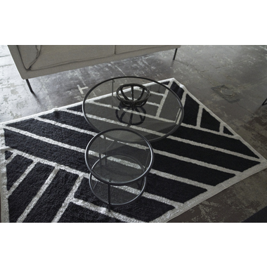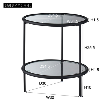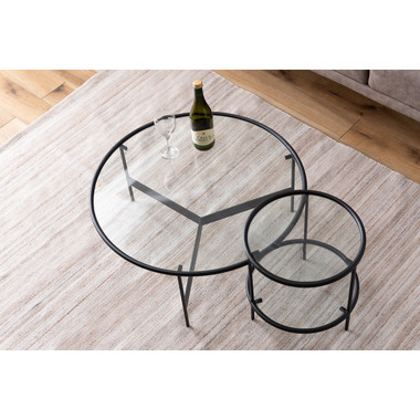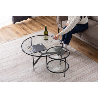 ●シンプルでスタイリッシュなガラステーブル●マットなブラックアイアンの滑らかな曲線とハードなガラスを組み合わせたテーブルに新サイズが登場しました。リビングテーブル/サイドテーブルとして使用したり、2台並べてネストテーブルとしても使用できます。脚部は10mm角のシャープなラインが際立ち、透明なガラス天板との組み合わせは圧迫感の無い開放的な空間を演出します。●ガラス天板は取り外しが可能●フェルト付きのガラス受け●天板は枠より下側にあります●床への傷を防止する保護キャップ付き