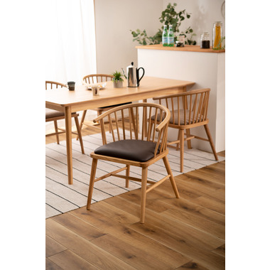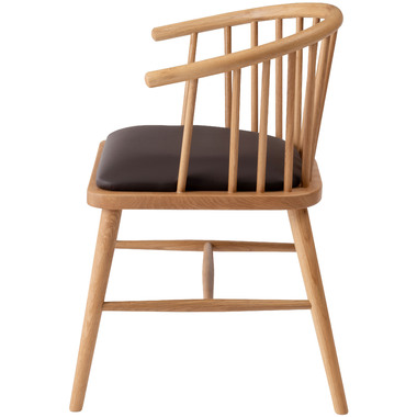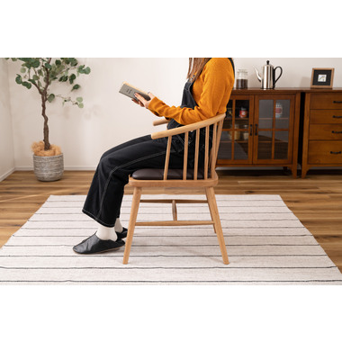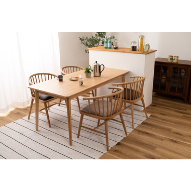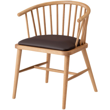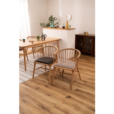 ●身体を包み込む優しいデザインのウィンザーチェア。●古くから愛されるイギリス発祥の伝統的な椅子[ウィンザーチェア]。●クッション性のある座面と曲線を取り入れた優しくナチュラルな印象のアームチェアは、掛け心地よく、インテリア性の高い空間を演出します。●天然木(オーク)を使用したチェア。手触りがよくしっくりと手になじみ天然木のぬくもりを感じる仕上がり。●オーク材は他の材と比べて耐久性・耐水性が高いのでお手入れもラクラク。